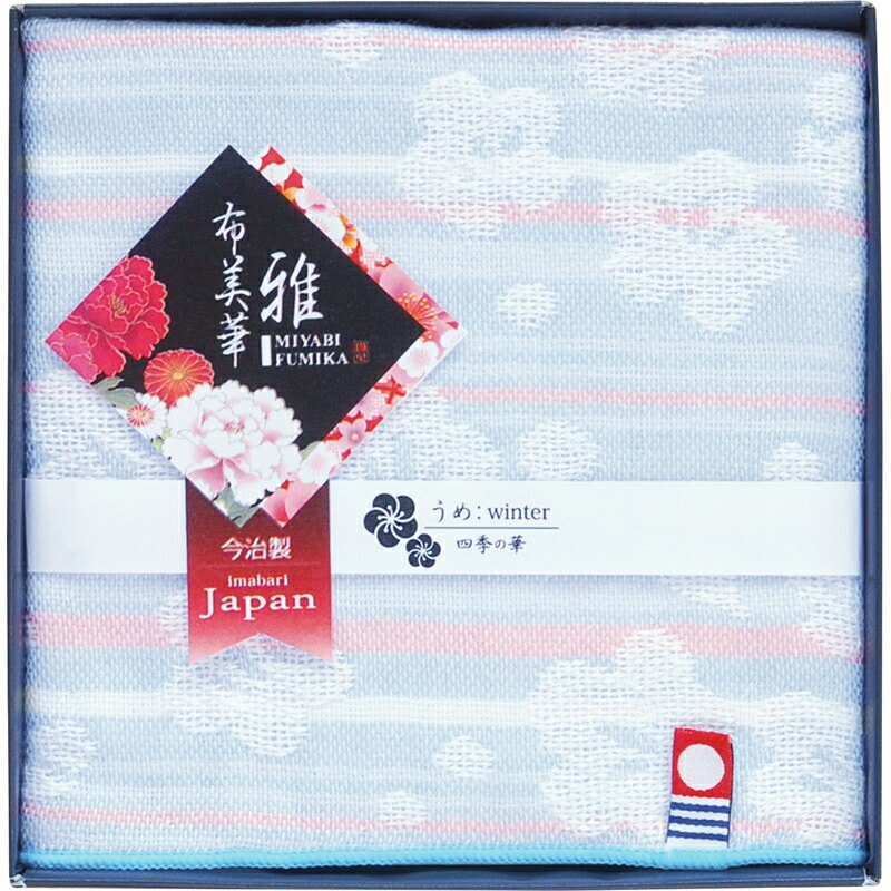 肌触りも良く使い勝手の良いガーゼタオルハンカチにジャガードで四季の花を表現。