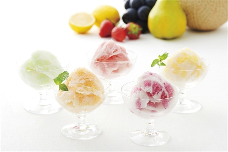 国産フルーツの美味しさを閉じ込めたシャーベットとなめらかなヨーグルトアイスのデザート。二つの味わいが織り成すフルーティで爽やかな美味しさ。