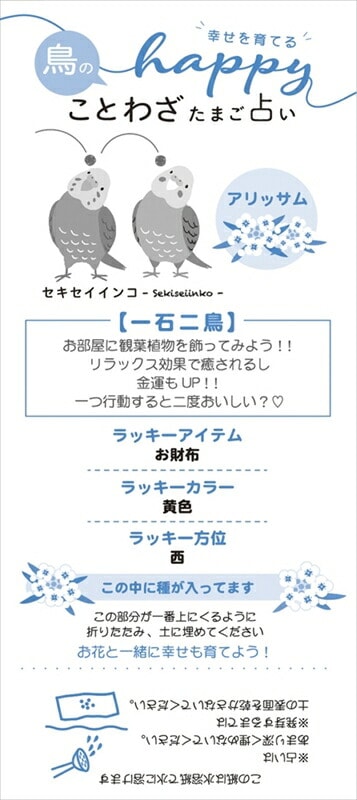- セット内容:たまご×1、占い×1(花の種付き)